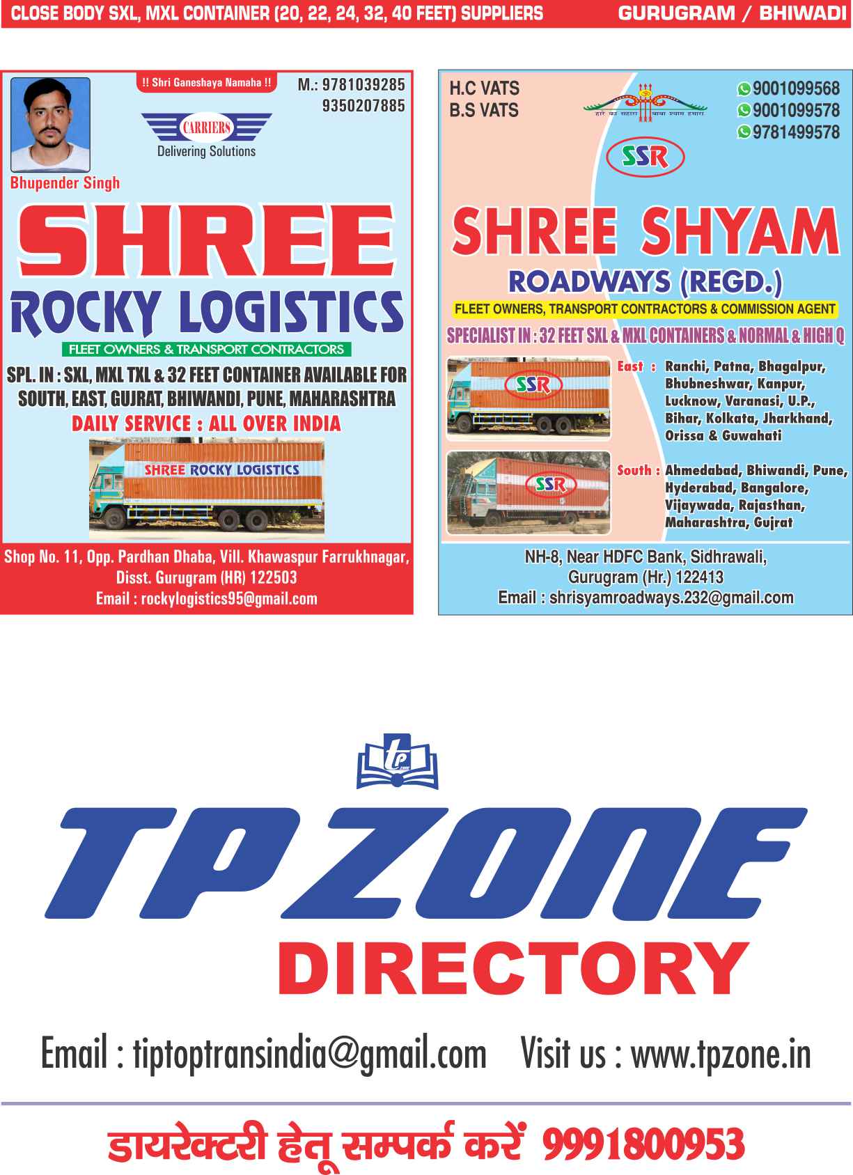 A lot of hard work has been executed to collect the general informations. Even thought, if any mistakes if found in misprinting TP Zone seeks pardon with folded hands. There are possibilities of mistakes in respect of collecting the contact No., Name, Address, male, website and it may be due to change of propriter, partener, manager and staff. To keep any trade relations with any transports, industries and trades, TP Zone will not be held responsible for such relations. All judicial disputes it will be settled in Gurugram dist. only (Haryana). All the rights are reserved with TP Zone.