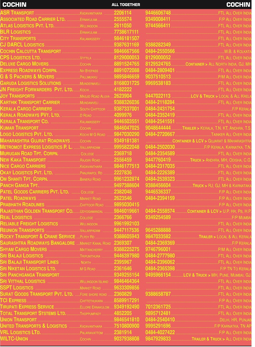 Full Load & Part Load Cochi