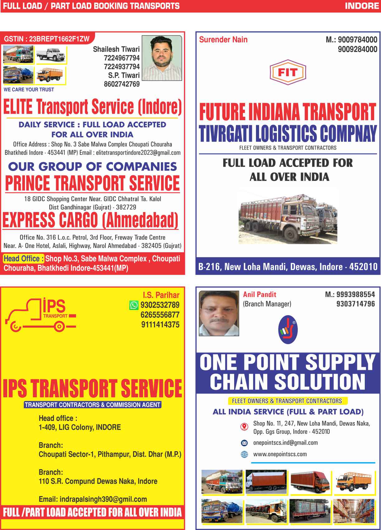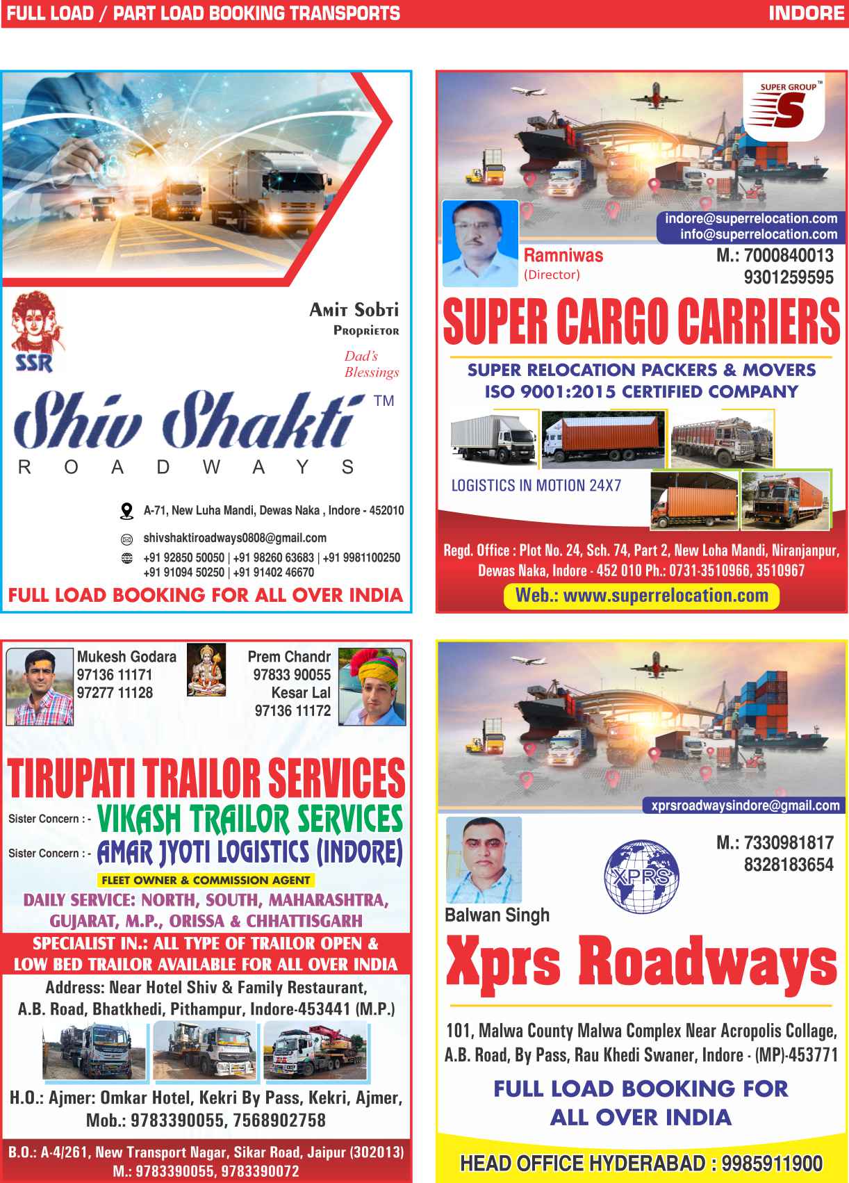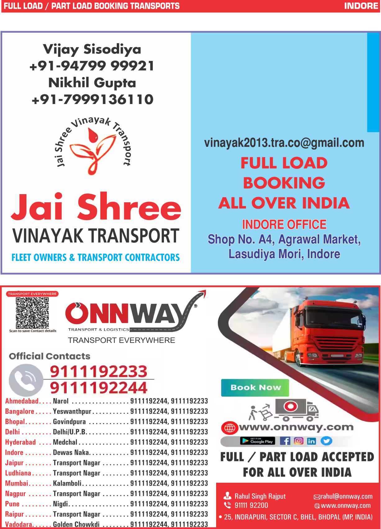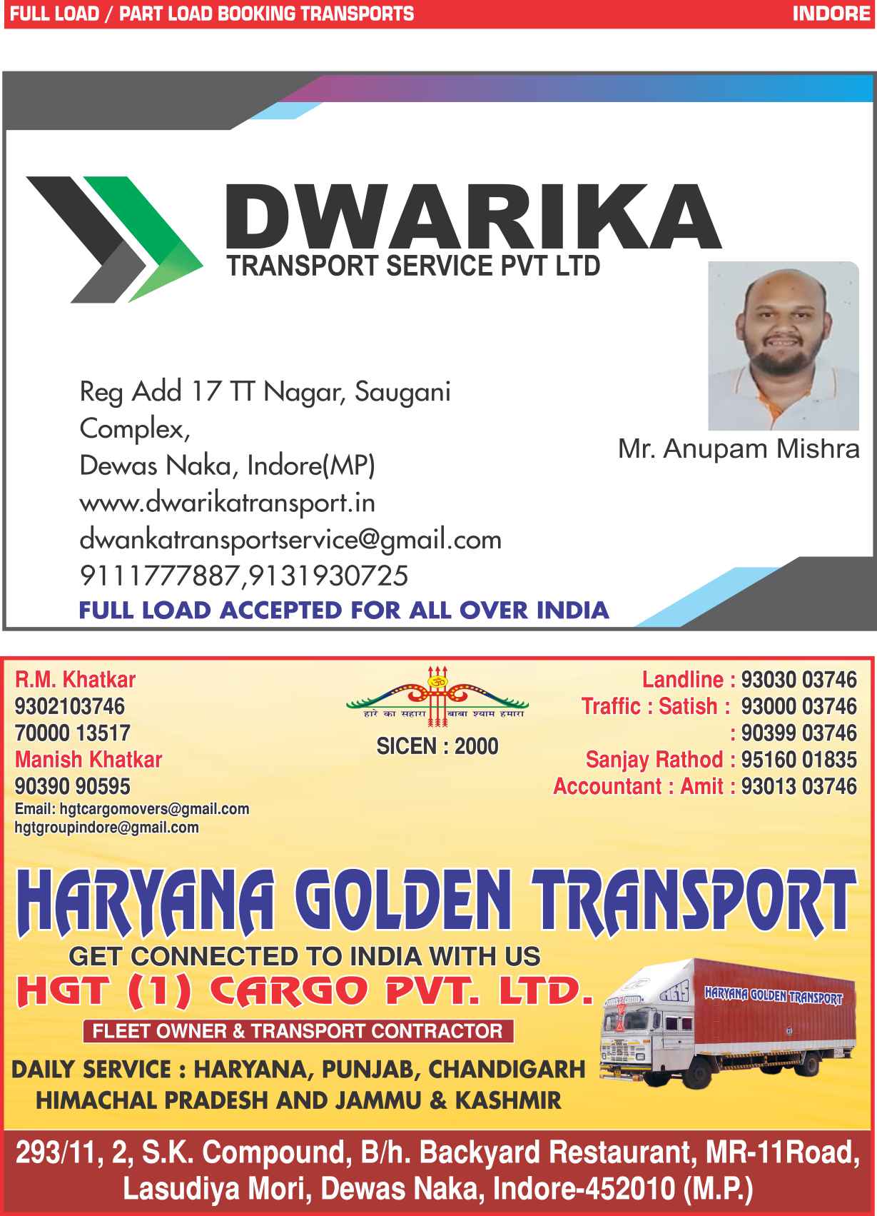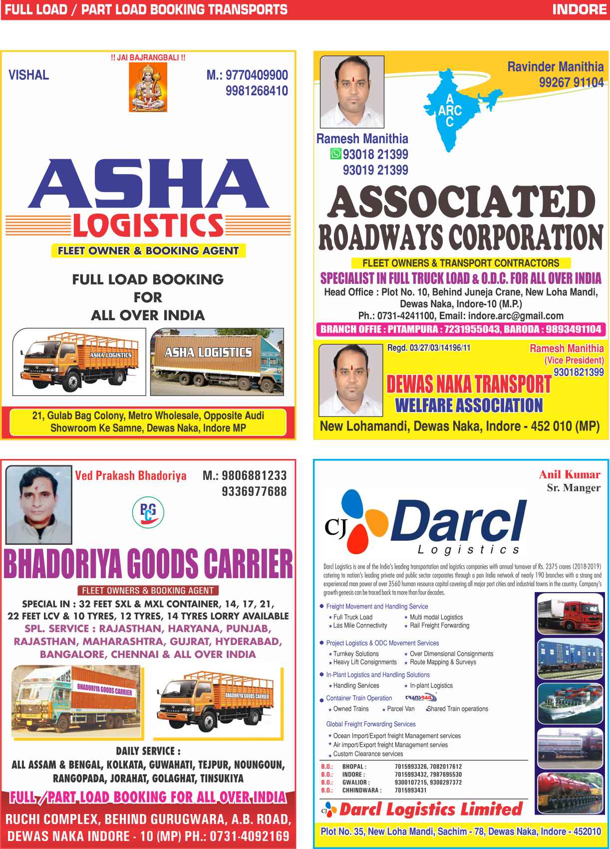 Full Load & Part Load Indore